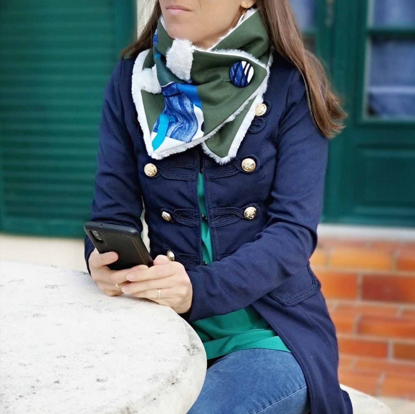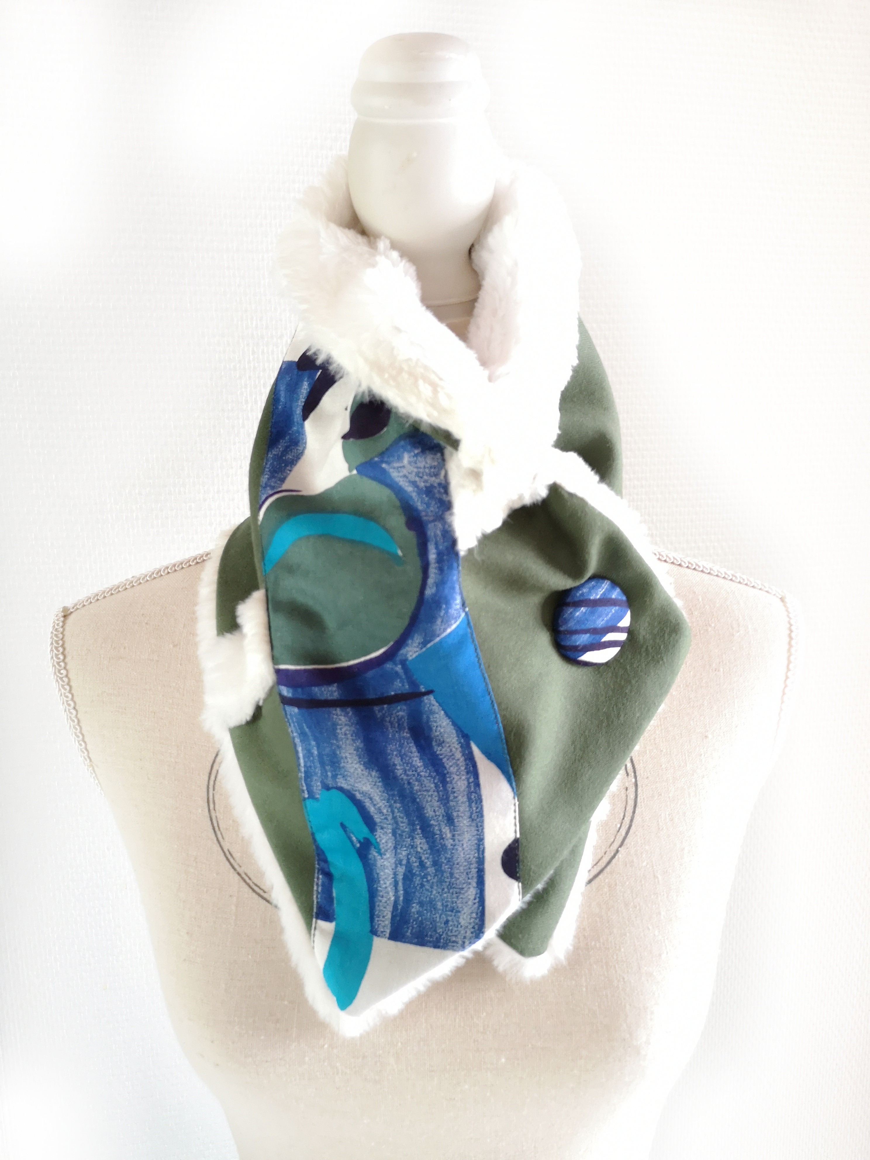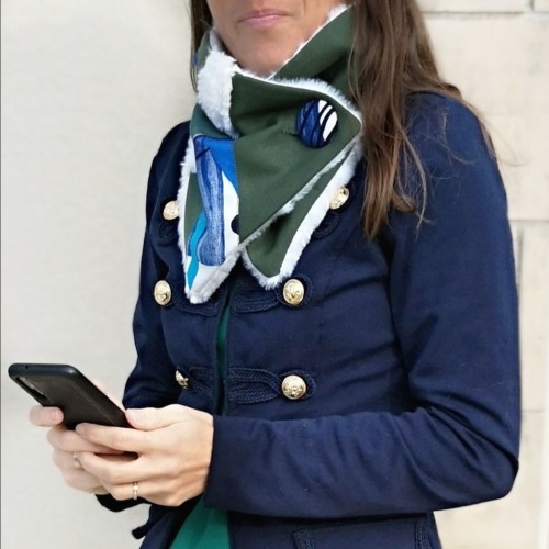 Il se ferme par un gros bouton et est à positionner selon votre envie.
