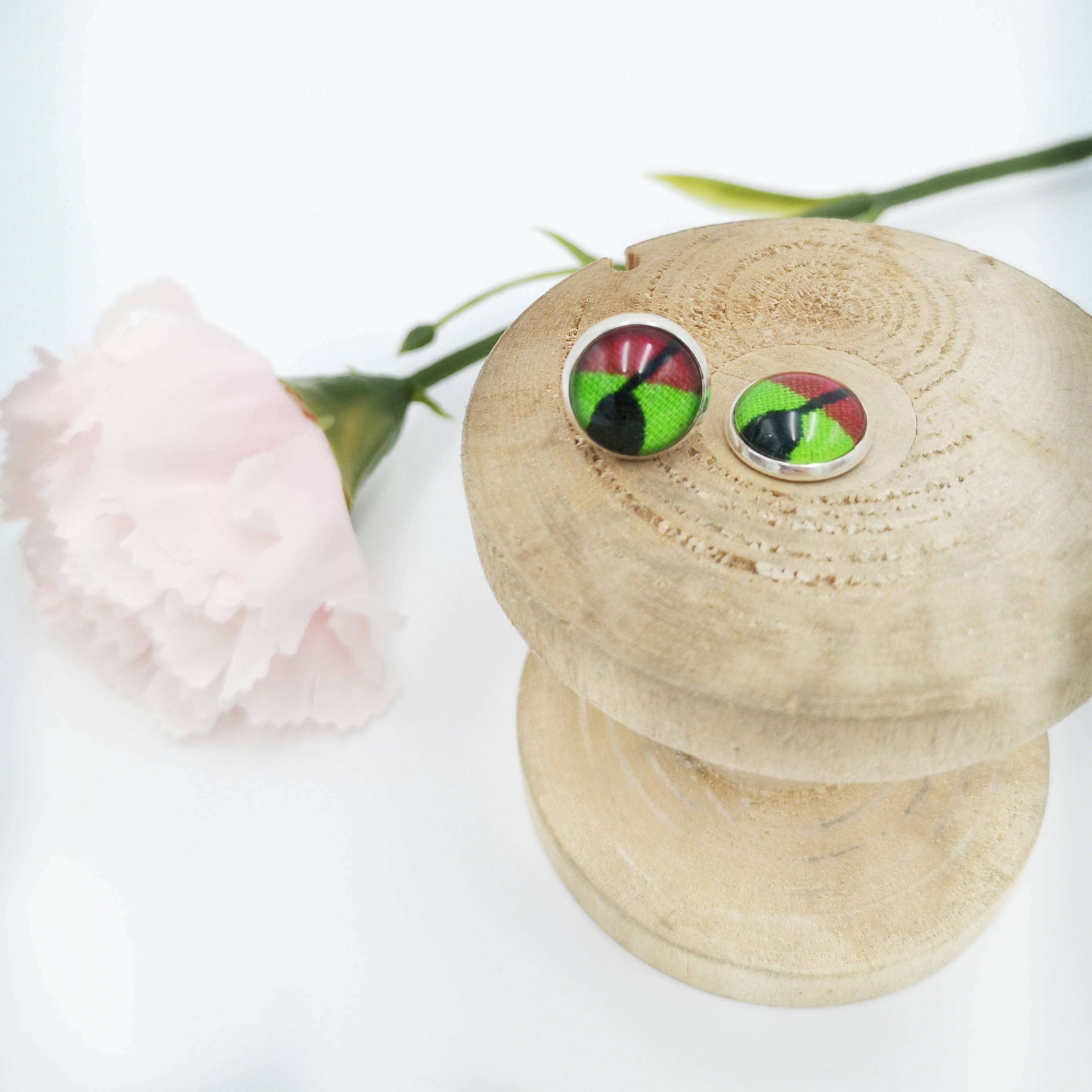 Et bien ces boucles d'oreilles ROSACE avec cabochon en verre de 12 mm en Alliage de Zinc dans les tons argent (sans plomb et sans nickel) seront idéales !