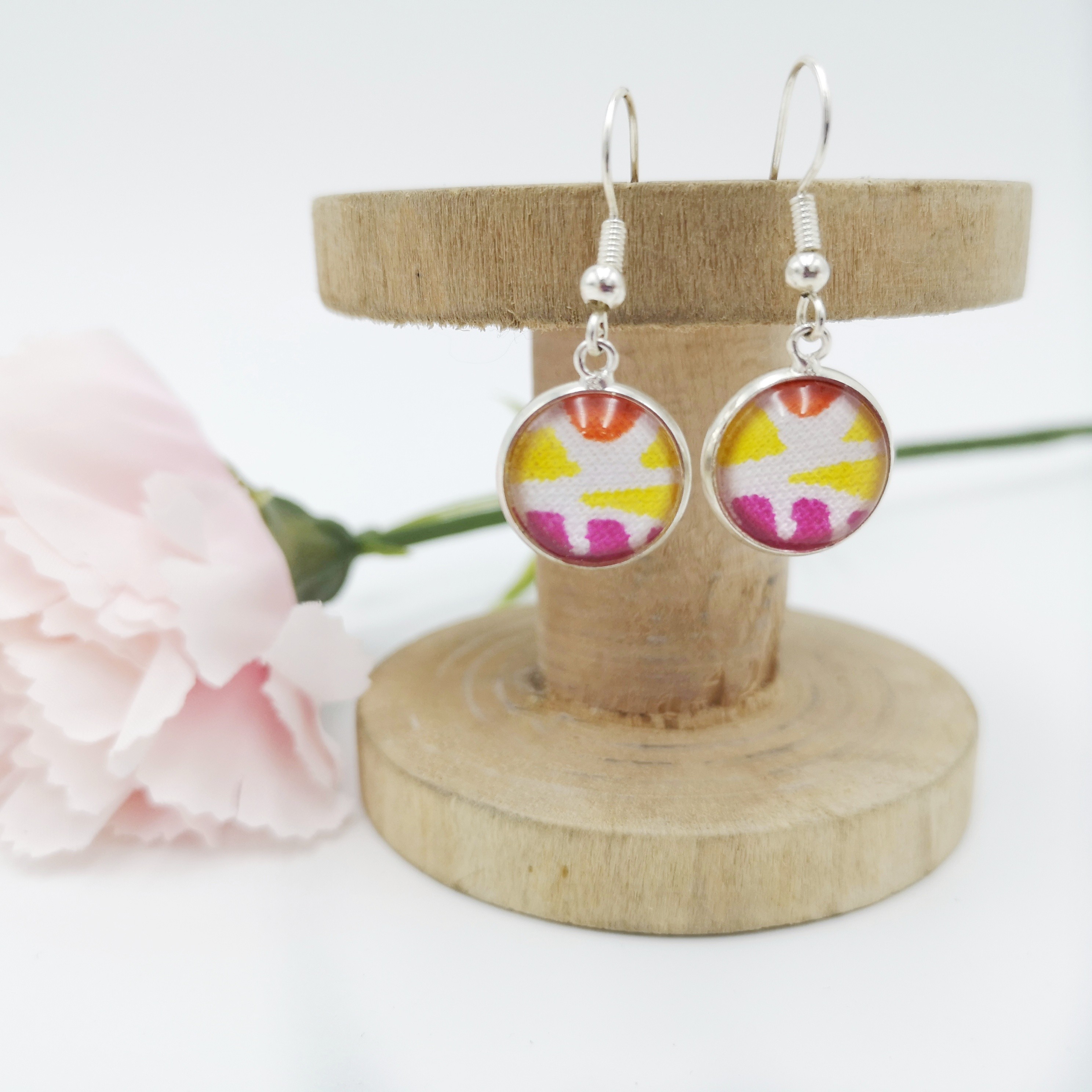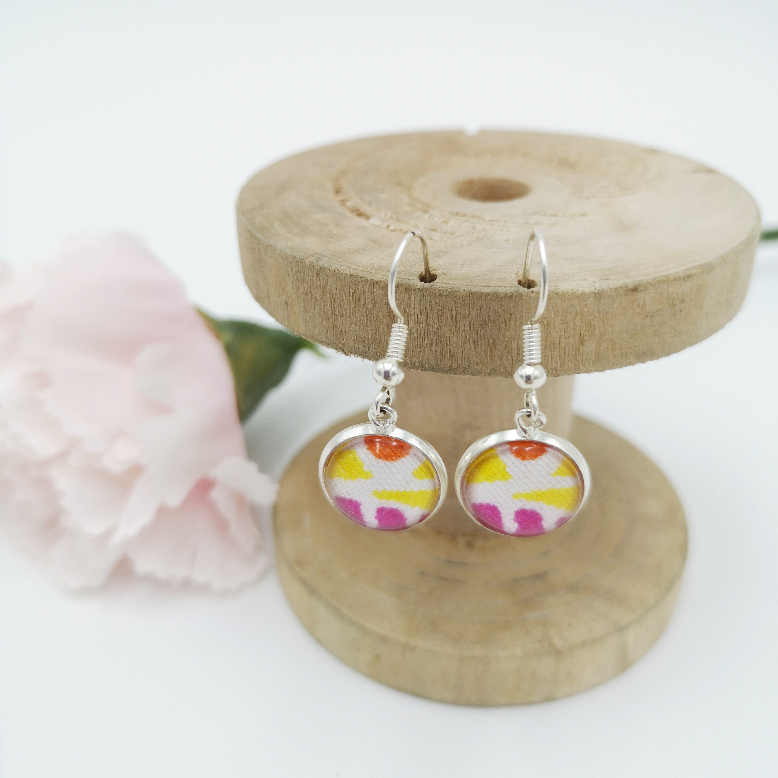Et bien ces boucles d'oreilles PURPLE avec cabochon en verre de 12mm en Alliage de Zinc dans les tons argent (sans plomb et sans nickel) seront idéales !