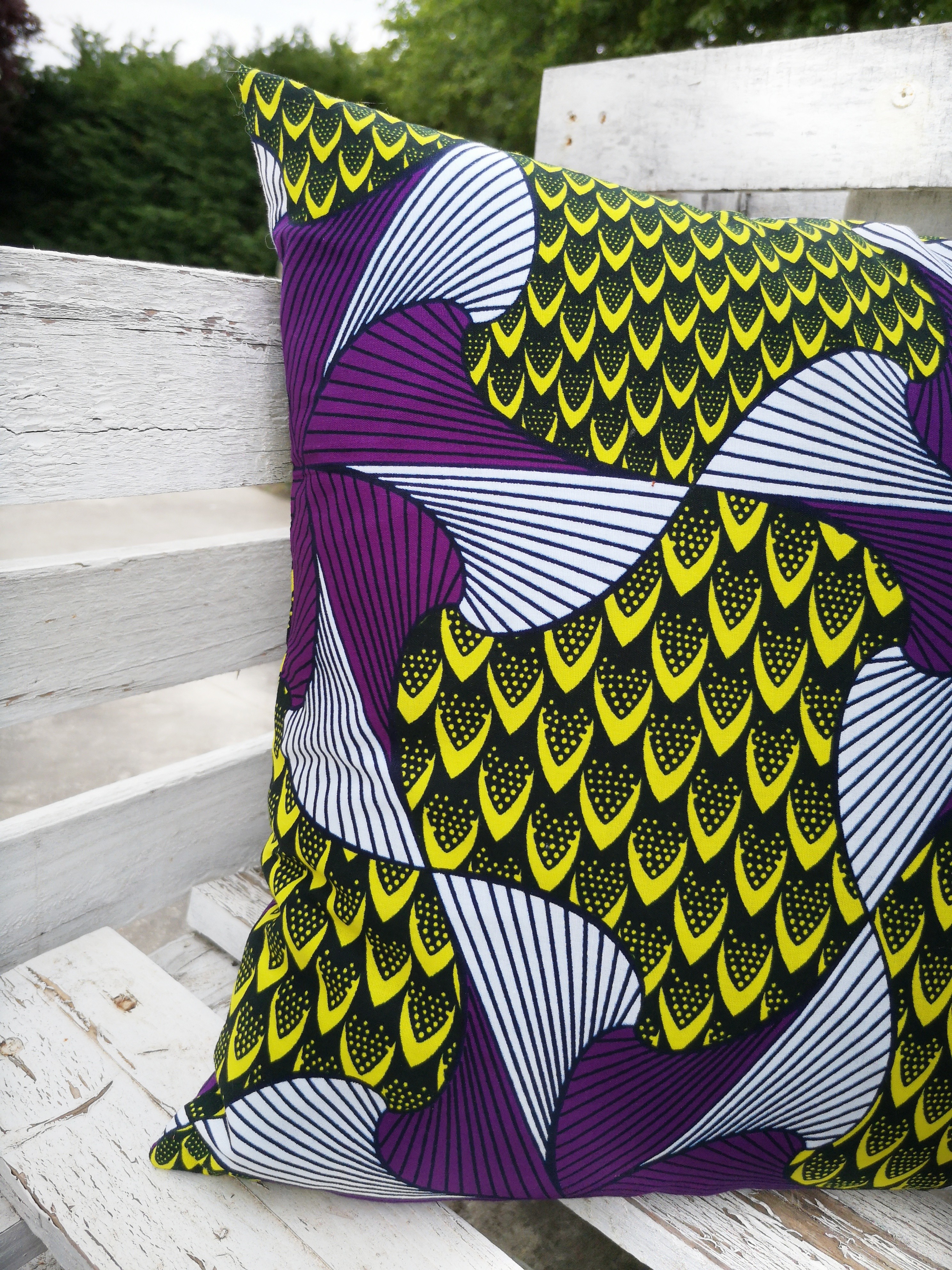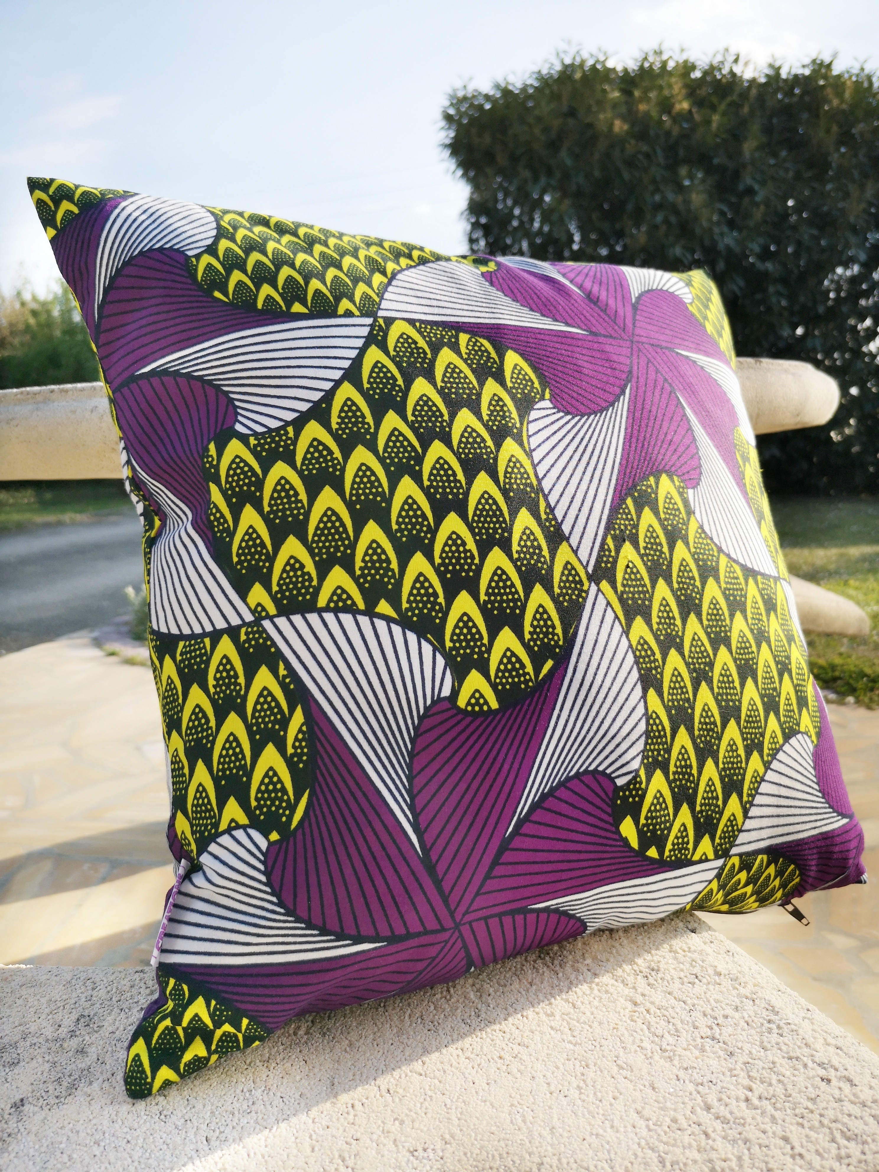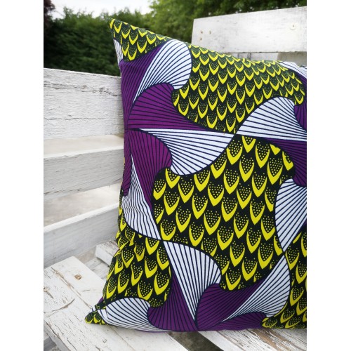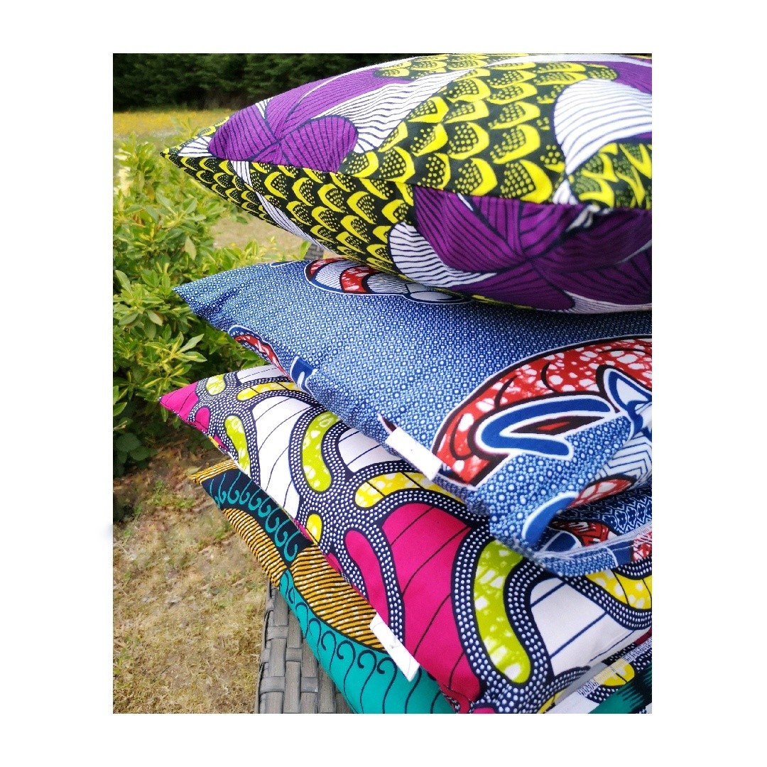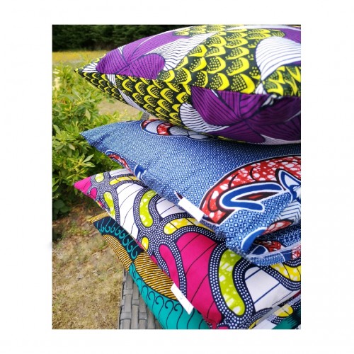 Housse de coussin 100% coton wax facile à positionner avec sa fermeture portefeuille.