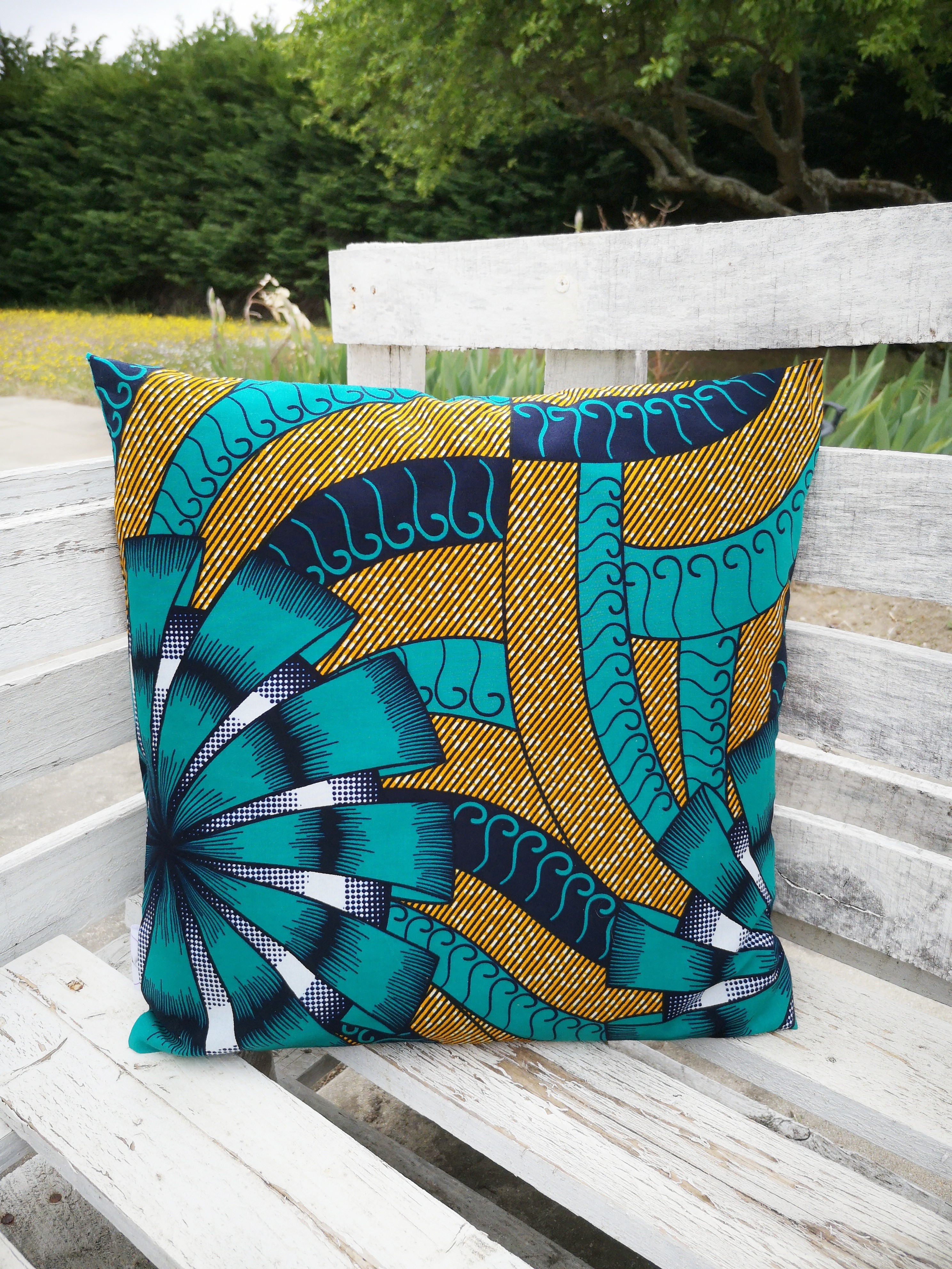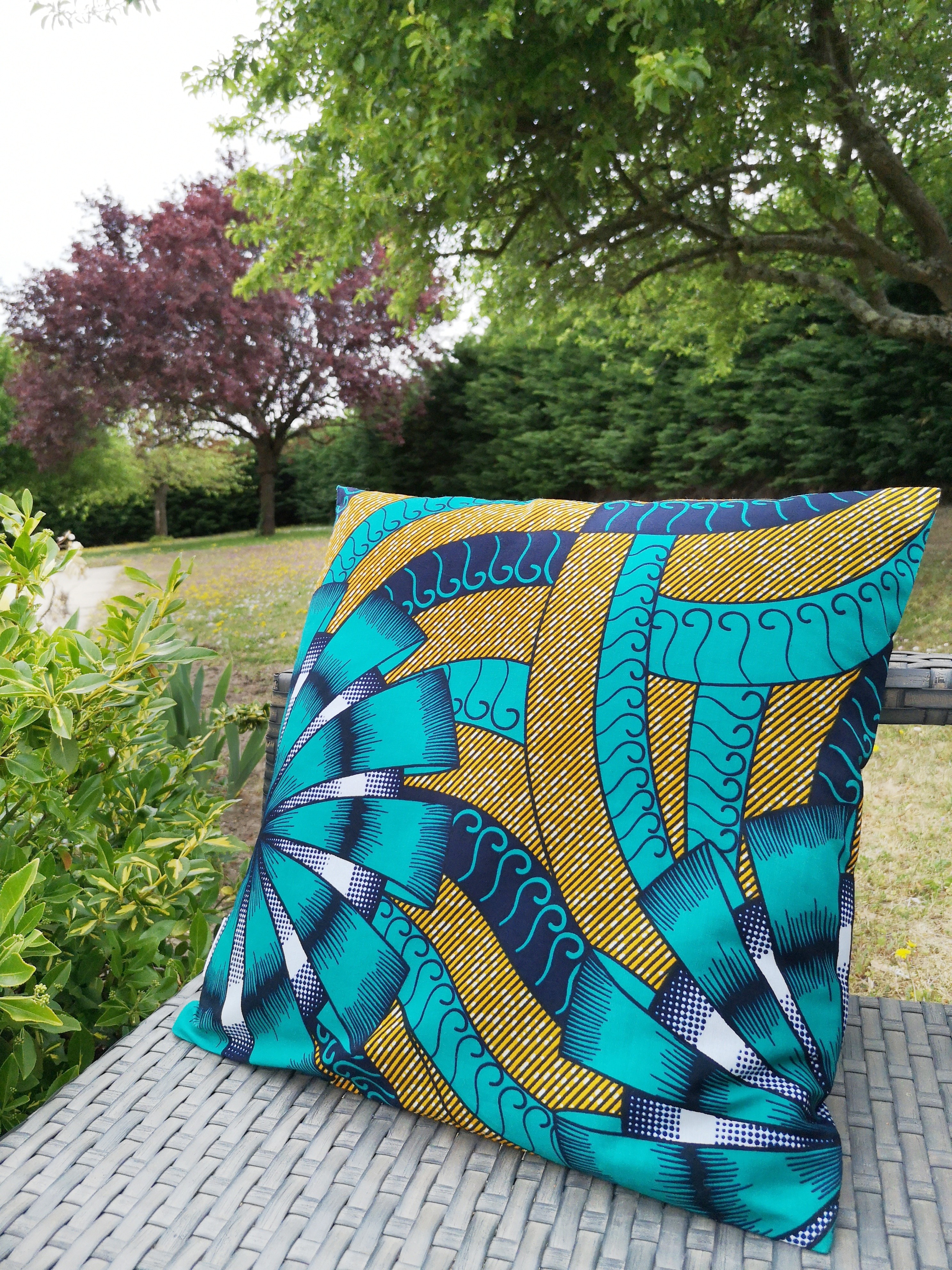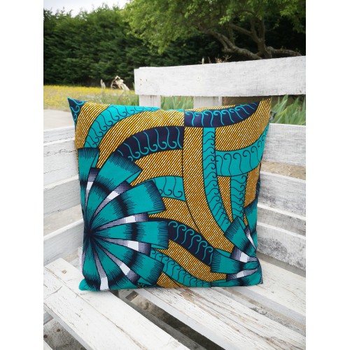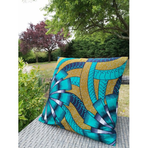 Housse de coussin 100% coton wax facile à positionner avec sa fermeture portefeuille.