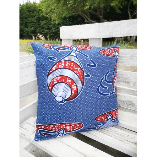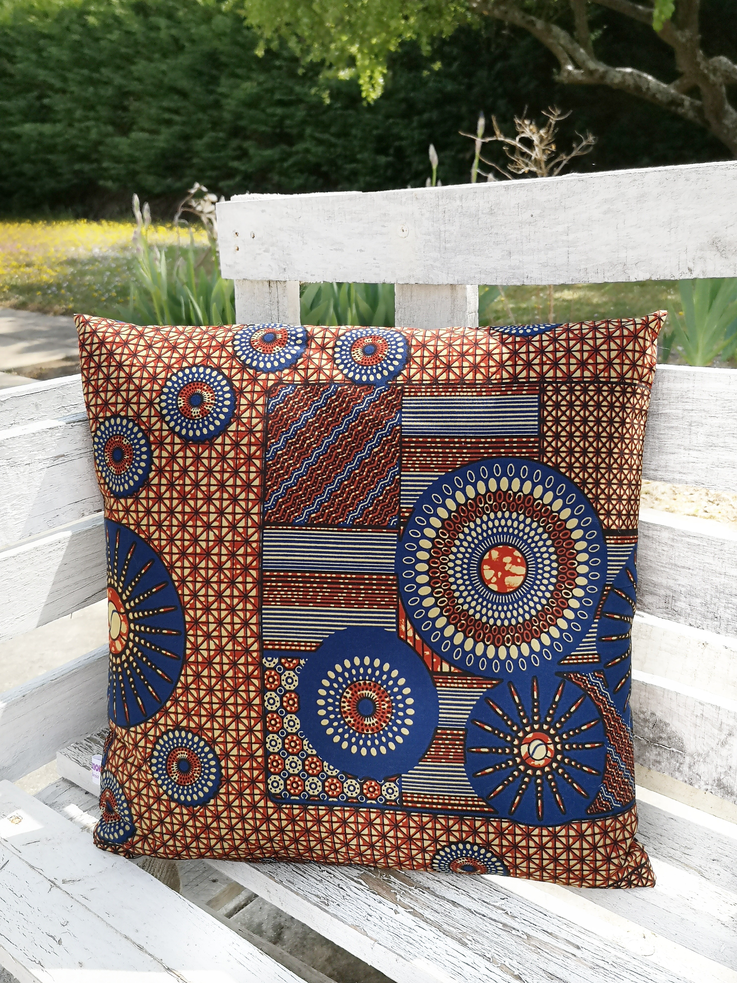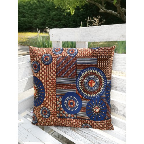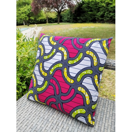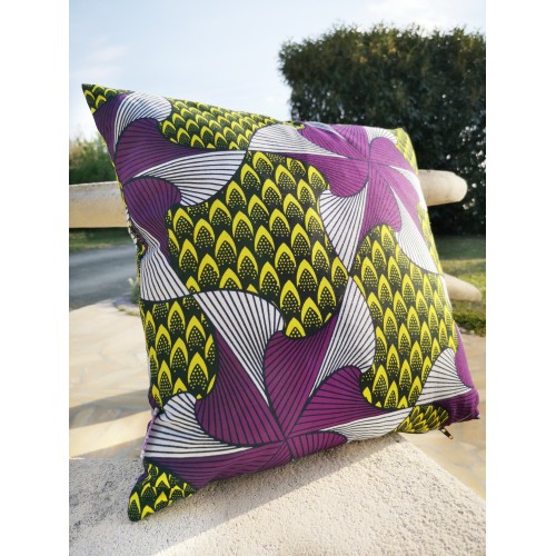 Housse de coussin 100% coton wax facile à positionner avec sa fermeture portefeuille.