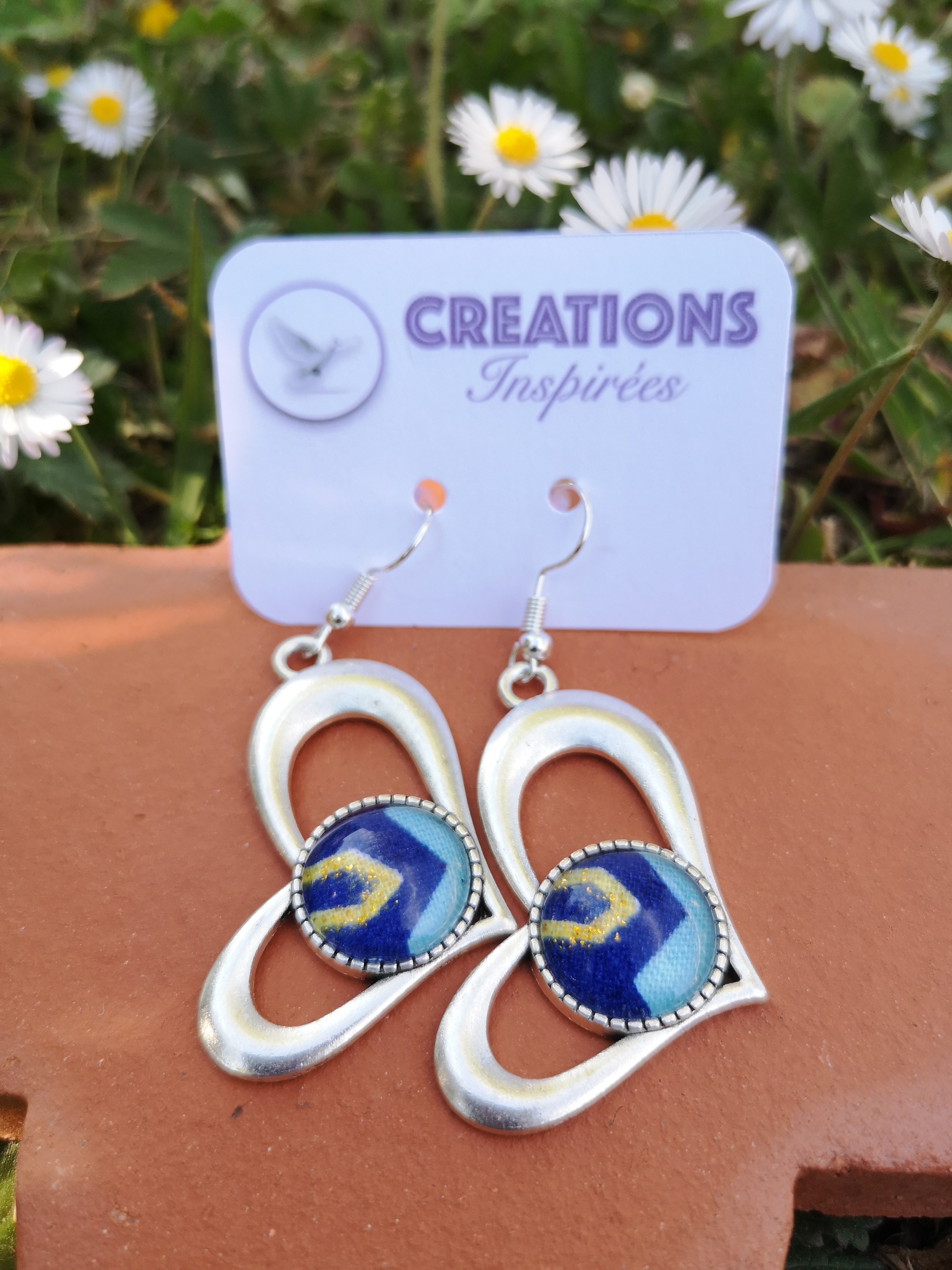 Et bien ces boucles d'oreilles COEUR Blue en alliage d'argent vieilli et verre transparent. (sans plomb et sans nickel, hypoallergénique). seront idéales !