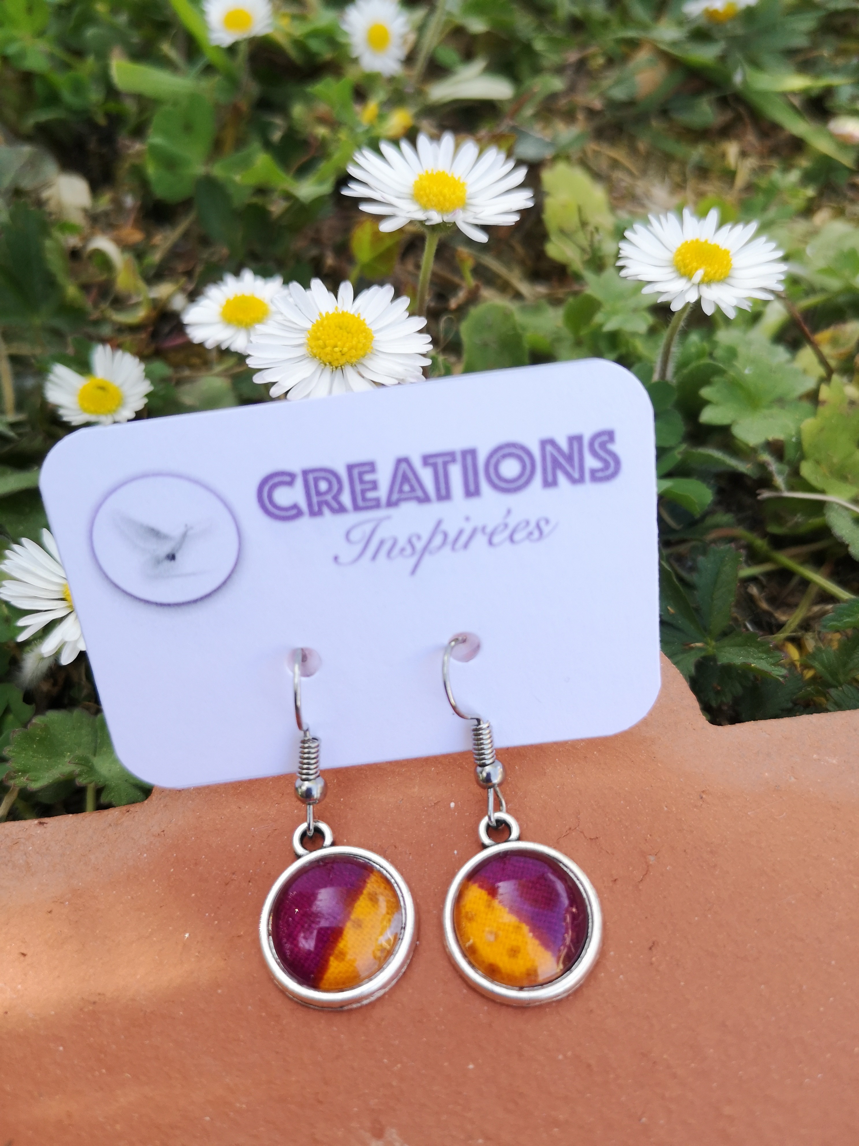 Et bien ces boucles d'oreilles PRUNE avec cabochon en verre de 12mm en Alliage de Zinc dans les tons argent (sans plomb et sans nickel) seront idéales !