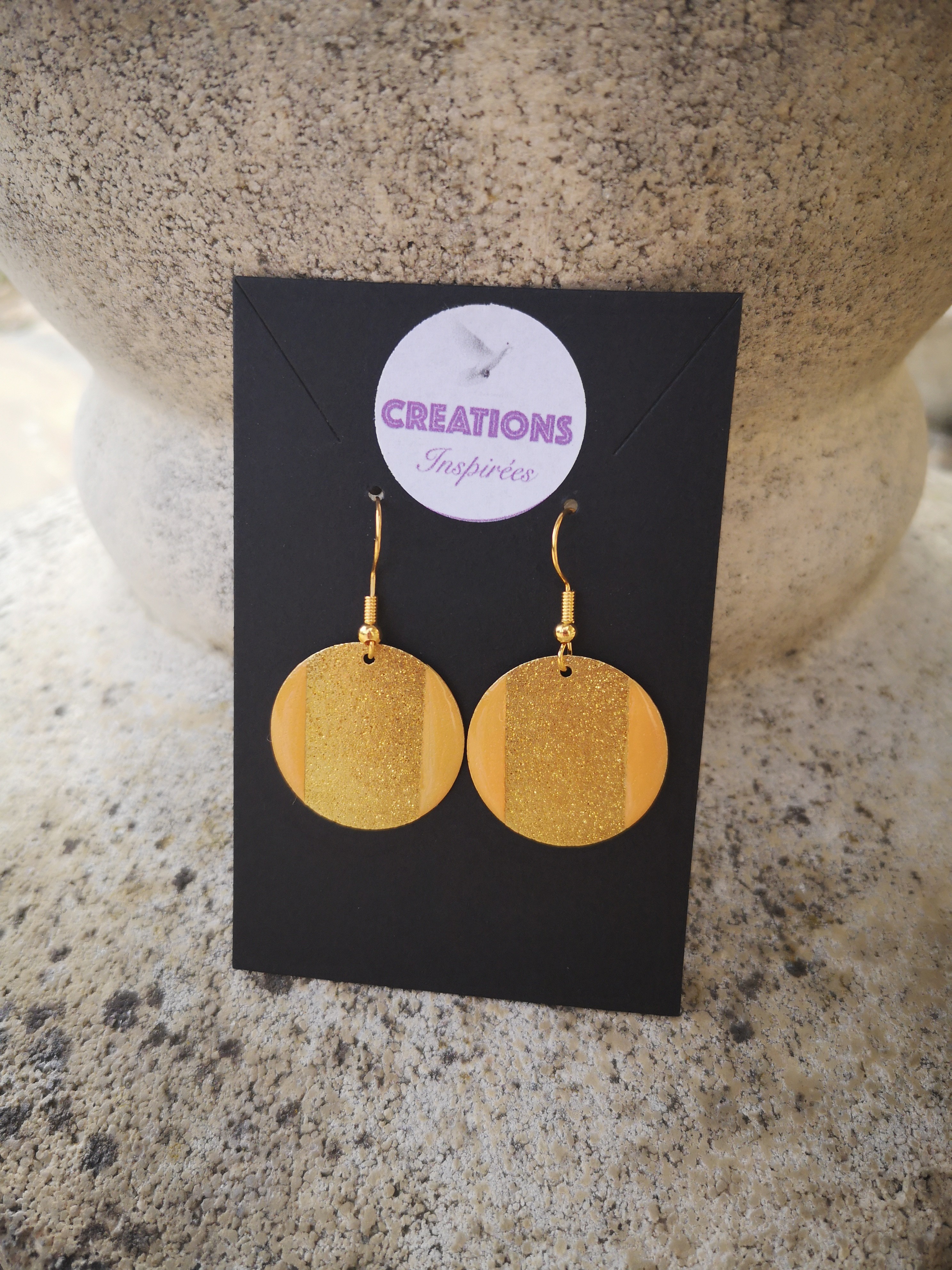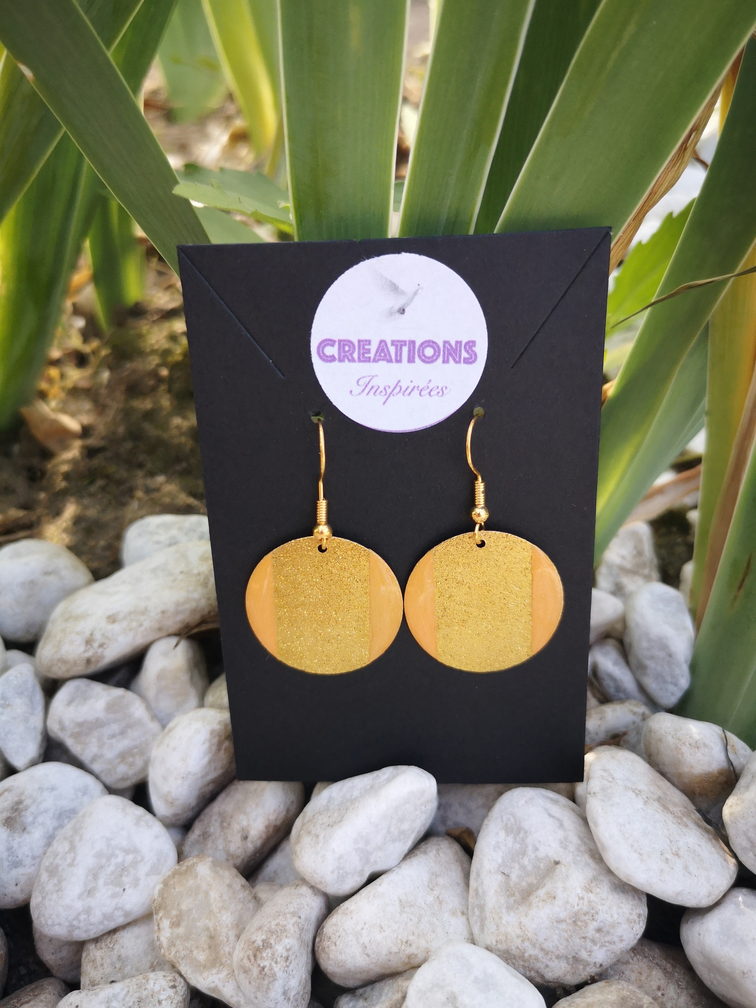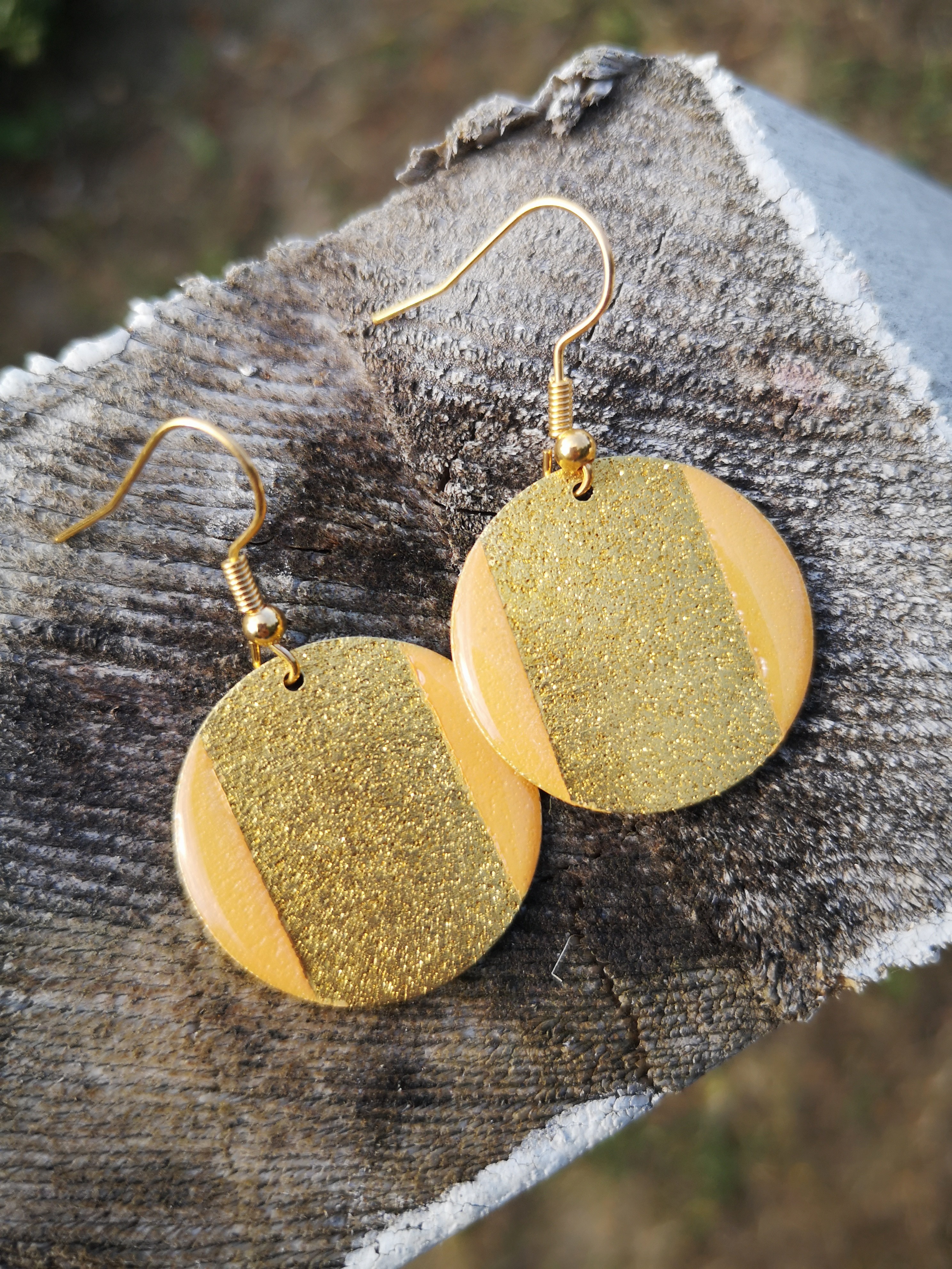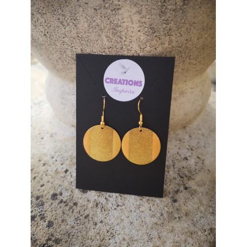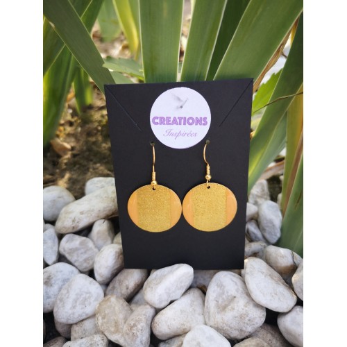 Osez cette paire de boucles d'oreilles handmade effet granité doré de 25 mm , assemblage sur crochet en acier et résine.